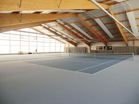 Ein Blick in unser Clubhaus, auf unsere Plätze und Außenanlage sowie unsere Halle.