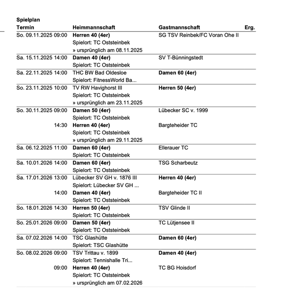 Die Heim- und Auswärtsspiele im Winter 2025/2026 unserer Mannschaften stehen hier bereit: